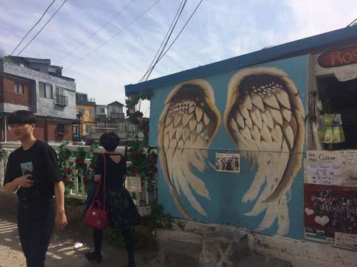 หมู่บ้านจิตกรรมฝาผนังอีฮวา ตั้งอยู่ในย่านฮีฮวาดงในโซล เดิมเคยเป็นหมู่บ้านเก่าแก่ค่อนข้างทรุดโทรม ไม่ค่อยน่ามองจึงได้มีโครงการปรับปรุงสภาพแวดล้อมและวิวทิวทัศน์ของหมู่บ้านแห่งนี้ขึ้นในปี 2006 มีนักศิลปินอาสาสมัครกว่า 60 ท่านมาทำการทาสีและสร้างจิตกรรมฝาผนังบ้านและกำแพงต่างๆ ใ้หมีความสวยงามและเป็นเอกลักษณ์ทั่วหมู่บ้านแห่งนี้ และกลายเป็นแหล่งท่องที่ยวที่ได้รับความนิยมทั้งจากนักท่องเที่ยวและชาวเกาหลีใต้ ปัจจุบันจิตกรรมฝาผนังที่หมุ่บ้านแห่งนี้ไม่เยอะเหมือนช่วงแรกๆ เพราะมีชาวบ้านบางส่วนที่ไม่พอใจและได้รับความเดือดร้อนจากมลภาวะทางเสียงจากนักท่องเที่ยวและได้ทำการทำลายและลบรูปภาพต่างๆ บางส่วนออกไป